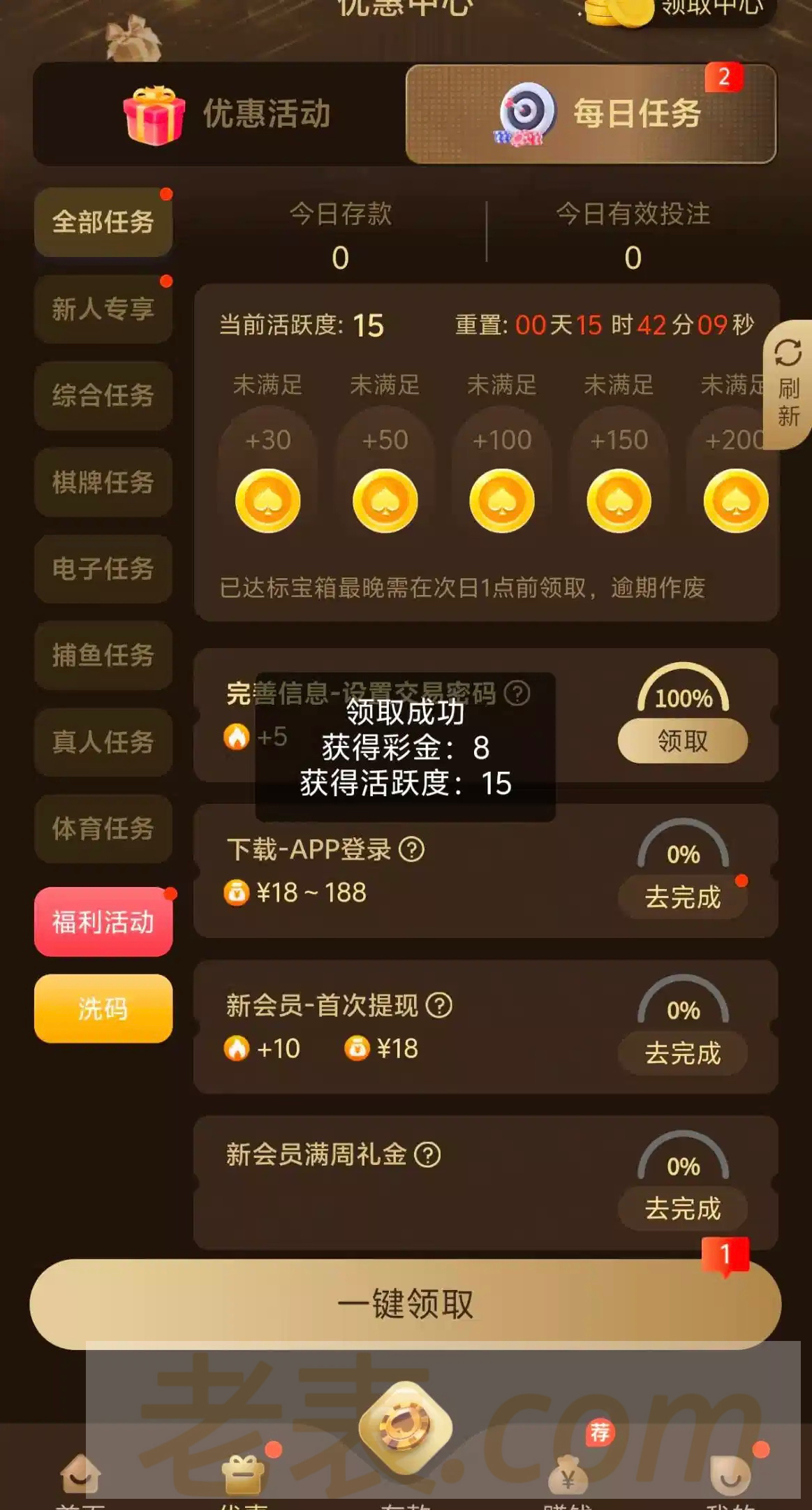注册完善资料可以领8,出款未知,我的没打出来勿充值。如果领取上限了,就等更新名额再去