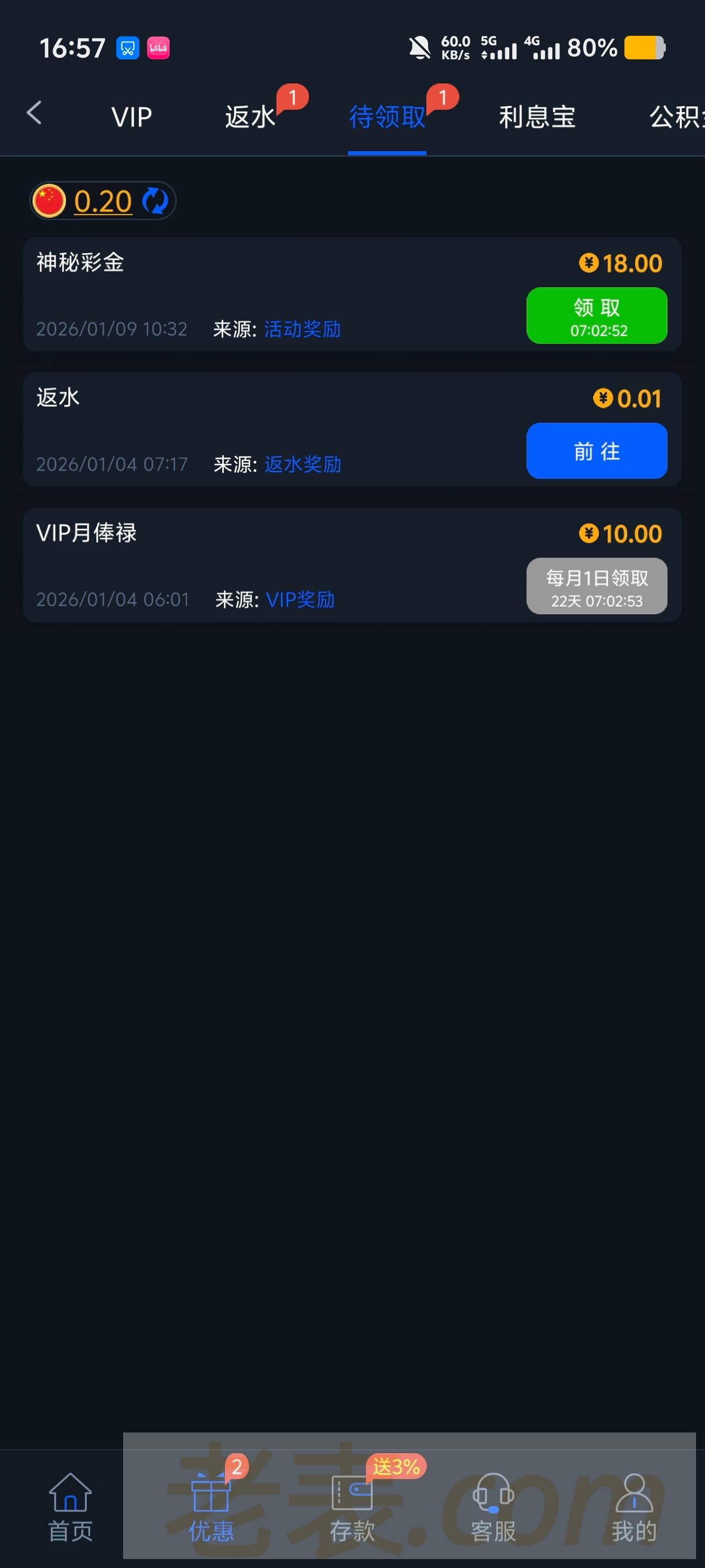 老用户有号登陆查看有没有回馈!
